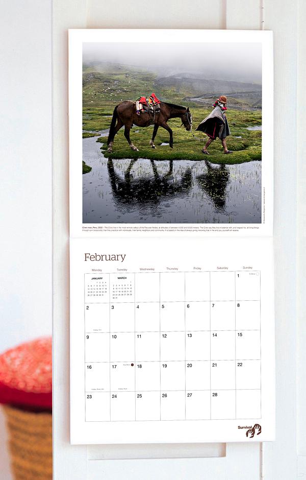 En achetant le calendrier de Survival, vous contribuerez à ce combat, car les bénéfices de sa vente seront entièrement affectés au financement des campagnes que nous menons aux côtés des peuples autochtones depuis 56 ans.