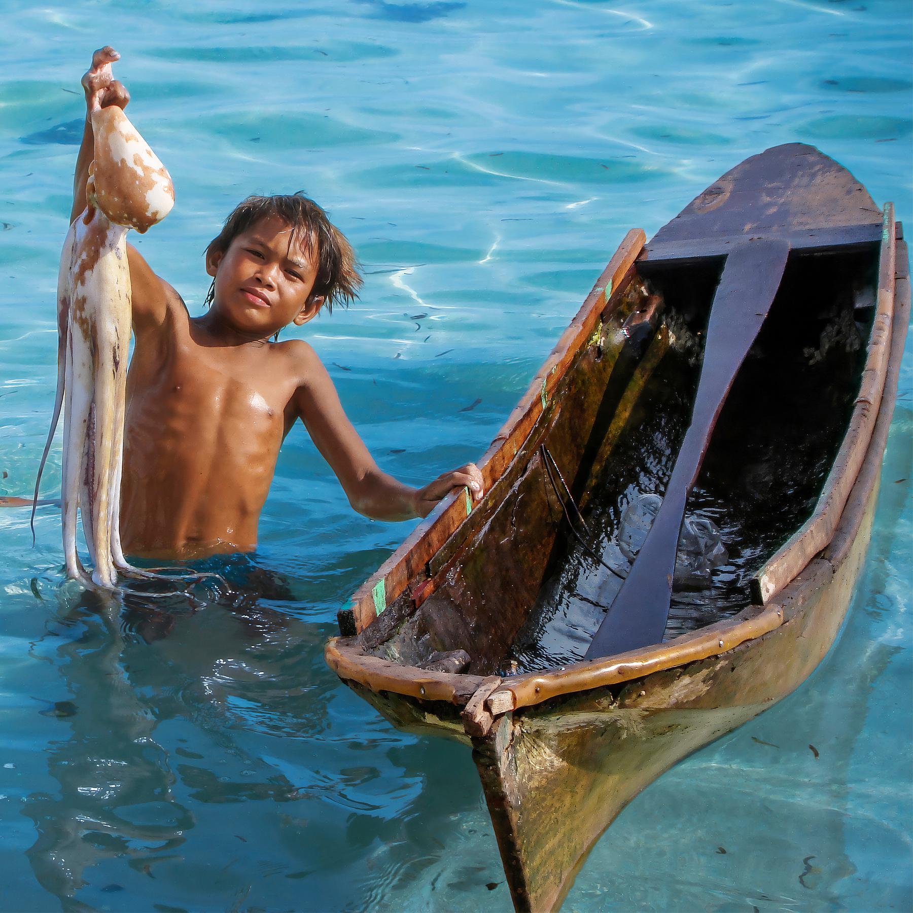 Garçon bajau laut, Malaisie, 2011 – Les Bajau, “nomades de la mer”, vivaient autrefois exclusivement en mer, mais aujourd’hui la plupart d’entre eux vivent au moins en partie dans des maisons sur pilotis construites dans les eaux peu profondes du littoral, dont beaucoup ont été démolies par le gouvernement au nom de la conservation. Au fil des générations, leur corps s’est adapté à la vie sous-marine, de sorte que, lorsqu’ils nagent, leur vision et leur capacité à retenir leur respiration sont bien supérieures à celles d’autres populations.