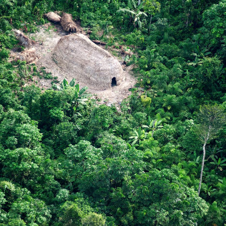 Membres d’un peuple non contactés près de leurs maisons communautaires, Brésil, 2011 – « Il existe de nombreux peuples autochtones non contactés. Les napë [non-autochtones] en veulent toujours plus et détruisent la nature. Mais le monde entier doit savoir qu’ils sont là, dans leur forêt, et respecter leur droit d’y vivre. » Davi Kopenawa Yanomami, extrait du rapport de Survival “Résister pour exister : la lutte mondiale des peuples autochtones non contactés”.