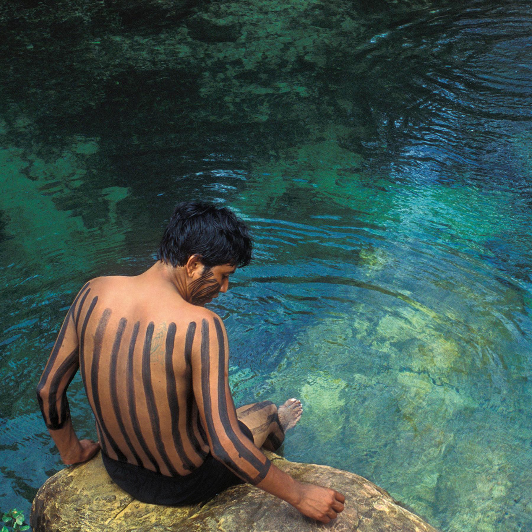 Homme mebêngôkre (Kayapó), Brésil, 2009 – Le peuple communément appelé Kayapó se désigne lui-même sous le nom de Mebêngôkre, “peuple de l’eau”. Son territoire est sillonné de grands fleuves alimentés par d’innombrables mares et ruisseaux. Ses terres subissent une pression intense de la part des éleveurs de bétail, des bûcherons et des mineurs qui agissent illégalement.