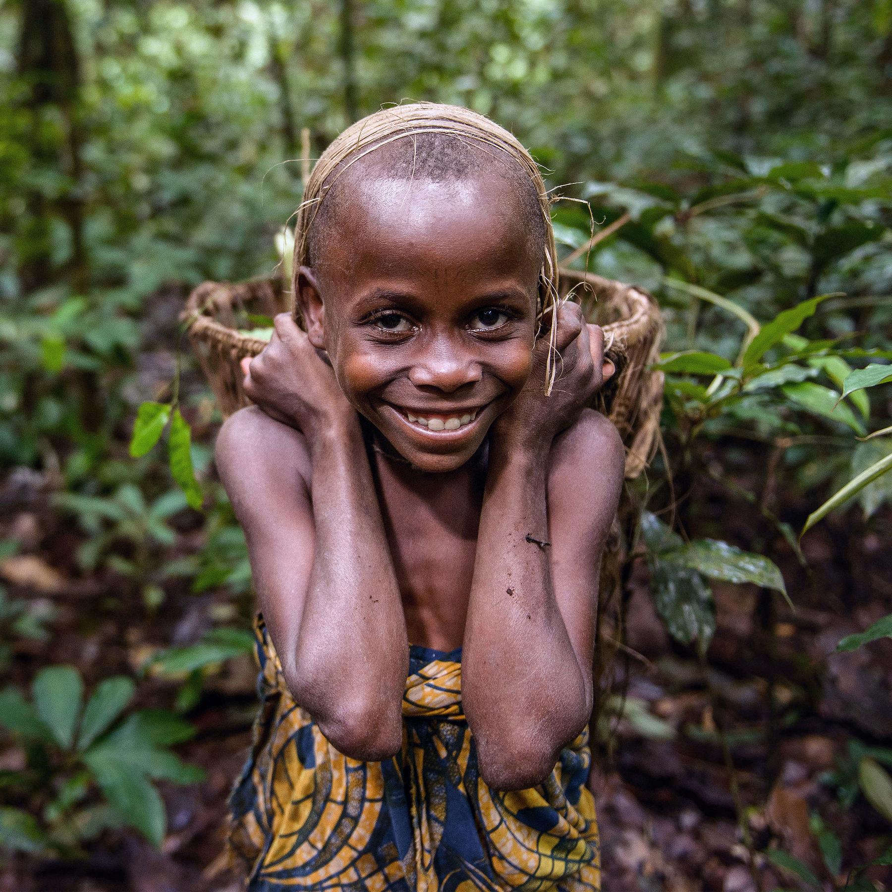 Lundi, une jeune fille bayaka, République centrafricaine, 2015 – Lors d’une partie de chasse bayaka, les jeunes apprennent à poser des pièges, à trouver des plantes comestibles ou à utiliser des feuilles comme récipients pour l’eau. Les Bayaka récoltent également une grande variété de racines, de plantes, de champignons sauvages, de miel et bien d’autres choses encore. Les entreprises forestières et l’industrie de la conservation s’emparent d’une grande partie des terres bayakas. #DecolonizeConservation